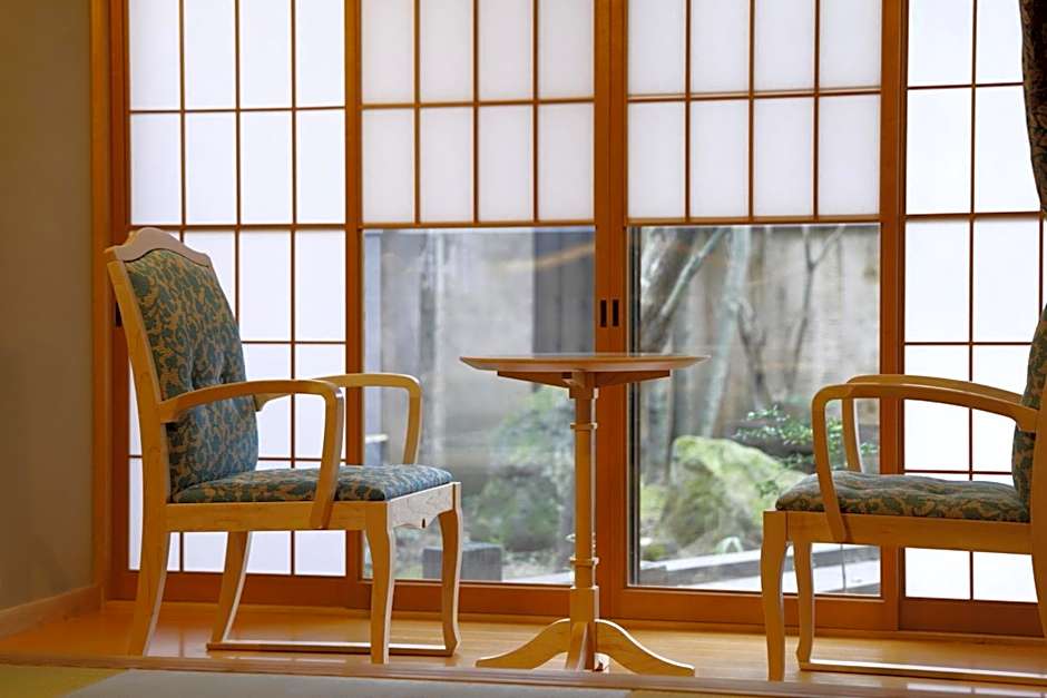This family room's special feature is the private open-air bath. The family room provides air conditioning, tatami, as well as a private bathroom featuring a shower and a bidet. The family room features a wardrobe, a safe deposit box, an electric kettle, pajamas and a flat-screen TV. The unit offers 4 futons.